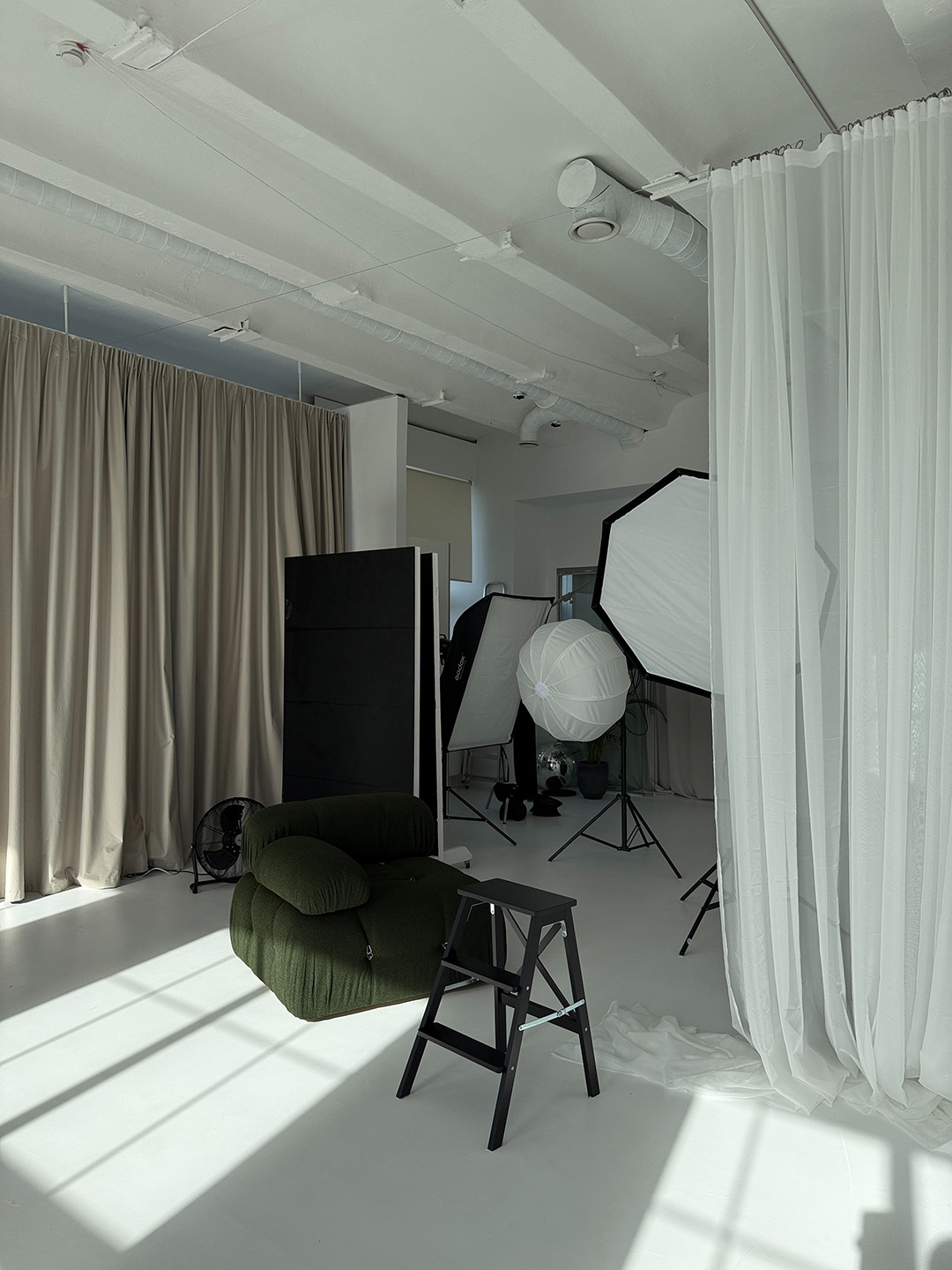 Studija ir lieliski piemērota gan zīmoliem ikdienas satura veidošanai, gan profesionāliem fotogrāfiem, kuri vēlas īstenot kvalitatīvas fotosesijas.